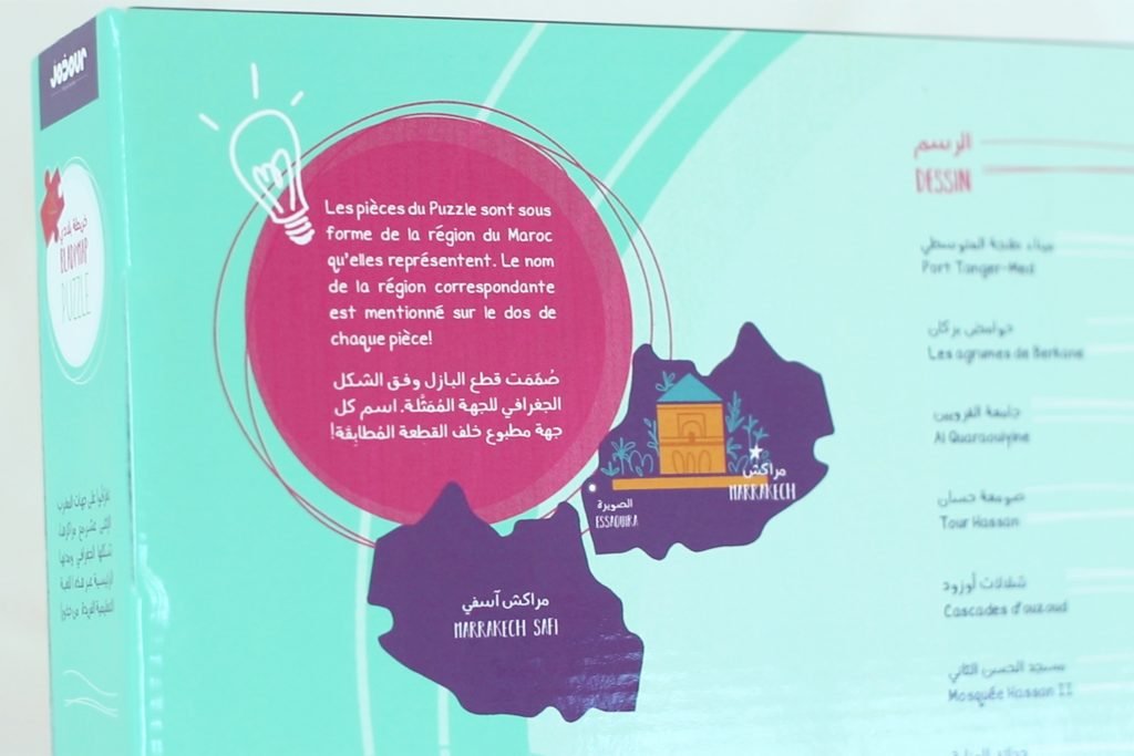 Bladi’Map est un jeu éducatif bilingue unique sous forme de puzzle qui a pour but d’initier les enfants à la géographie du Maroc et à ses régions administratives tout en jouant.