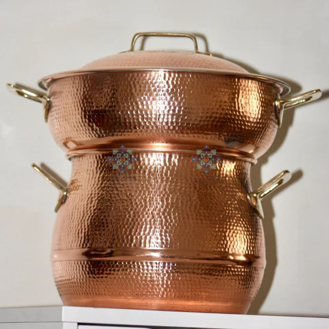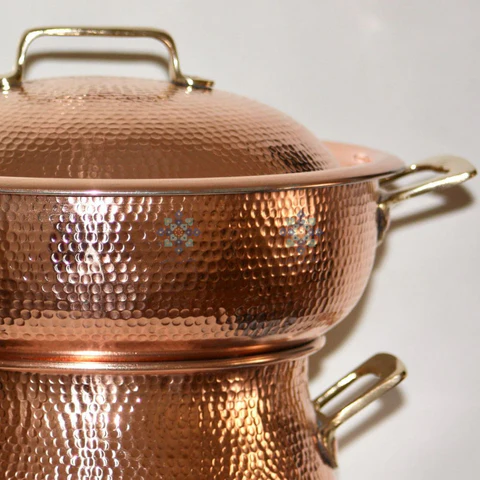 Explorez l’art et la tradition culinaire du Maroc avec notre couscoussier en cuivre fait main.